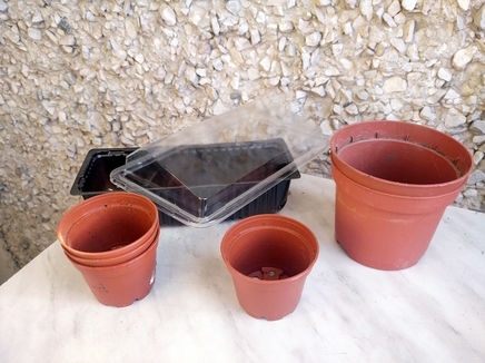Подготовьте емкости для посева. Семена перца можно посеять в рассадный ящик, а затем позже всходы распикировать в отдельные емкости.