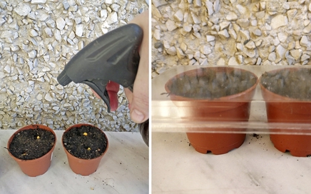 Увлажните почву теплой водой из пульверизатора, закройте посевы стеклом или пленкой и поместите в теплое место.