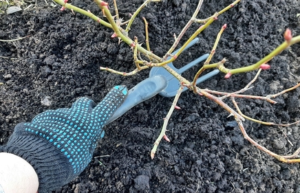 По весне после снятия укрытий с кустов грунт под ними нуждается в рыхлении и, при необходимости, в обновлении. Проводить такую работу следует аккуратно, при помощи садовой вилки.