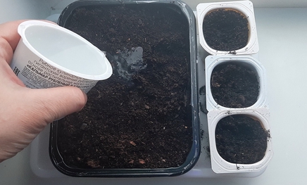 Но чтобы сэкономить тару, допускается вначале посеять семена в небольшие стаканчики или общую емкость, а затем переместить в более емкую тару методом перевалки вместе с комом земли.