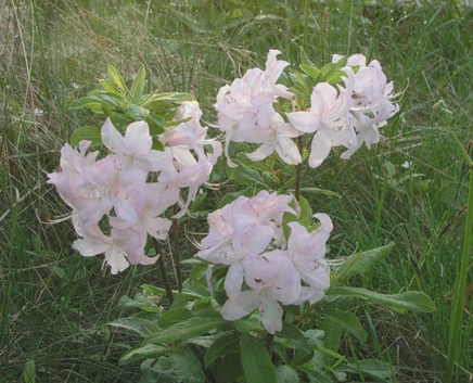 Листопадный сорт азалии. Отличается нежными розовато-перламутровыми цветками с небольшими золотистыми вкраплениями.
