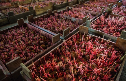В полной темноте клубни спят дольше. Но стоит солнечному лучу пробраться сквозь доски, как зарождающиеся ростки начинают тянуться к нему с невероятной скоростью.