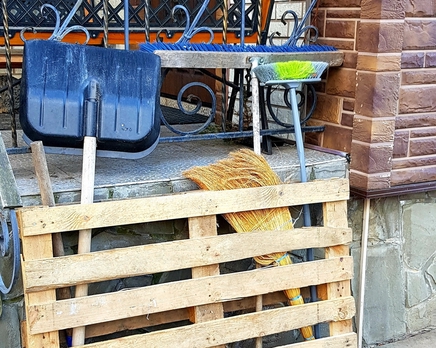 "На даче в разгар сезона удобно использовать в качестве органайзера старый поддон. Просто приставить его вертикально к сараю, таким образом, чтоб получился карман – и вставлять туда грабли, тяпки, листоуборники, лопаты".