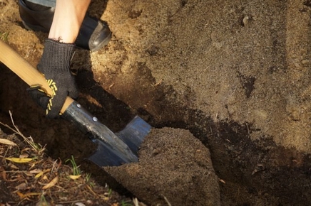 - Затем выкопать неглубокую траншею глубиной около 25-40 см.