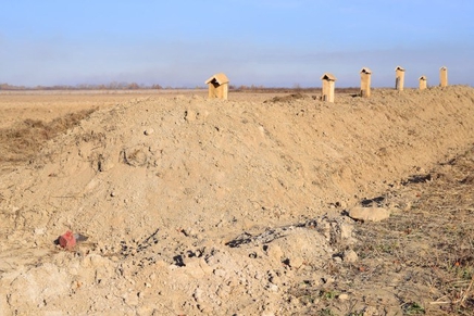 - Далее по центру траншеи следует выкопать вентиляционную канавку и по краям ее разместить трубы, чтобы они выходили за пределы бурта.