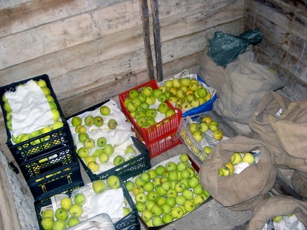 • Размещают тару с яблоками на расстоянии не менее 15 см от стены, чтоб была хорошая циркуляция воздуха.