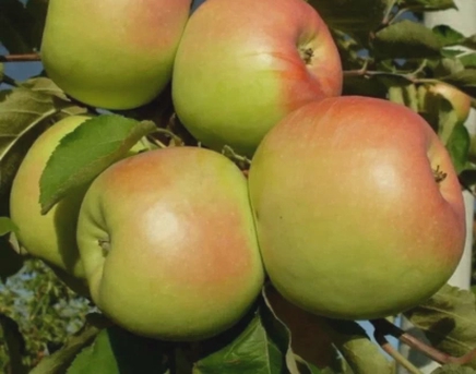 Плоды крупные, зеленоватого оттенка, местами с красным румянцем.