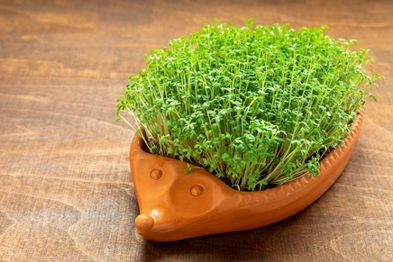• Сеять кресс-салат можно как в почву, так и в искусственные субстраты (на обычную губку, на ватный диск, смоченные слабым раствором комплексных удобрений или просто водой).