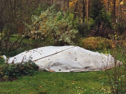 В холодных регионах над кустами ставят еще "шалаши" из веток и накрывают сверху полиэтиленовой пленкой, чтобы защитить укрытия от осадков.