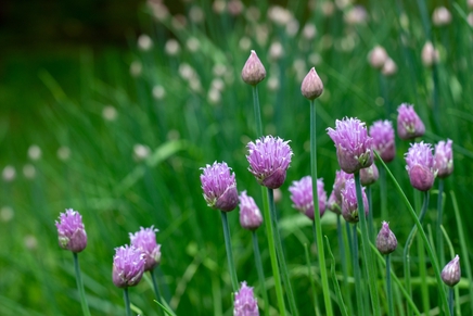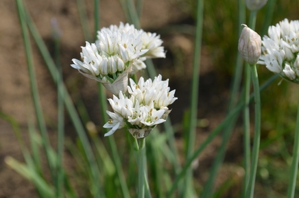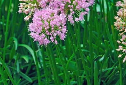 Со второго года, кроме зелени, появляются еще тонкие цветоносы высотой около 50 см с небольшими соцветиями-шарами розовато-сиреневой, красно-фиолетовой или белой окраски.