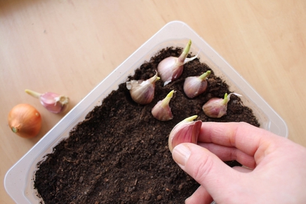 Это самый простой и наглядный способ. Он подходит для лука репчатого и чеснока.