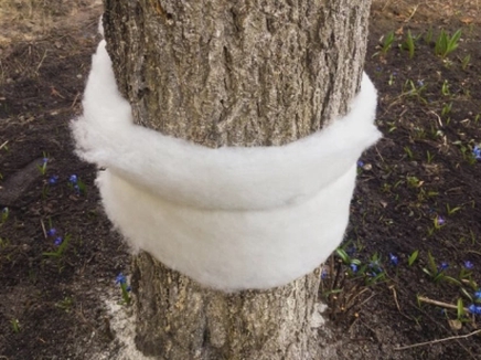 Некоторые садоводы используют стекловату, которую плотно обматывают вокруг ствола. Ее колючие волокна становятся непреодолимым препятствием для нежных тел гусениц.
