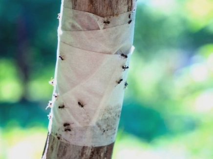 Клеевой пояс – самый эффективный метод против муравьев, жуков-долгоносиков и мелких гусениц.